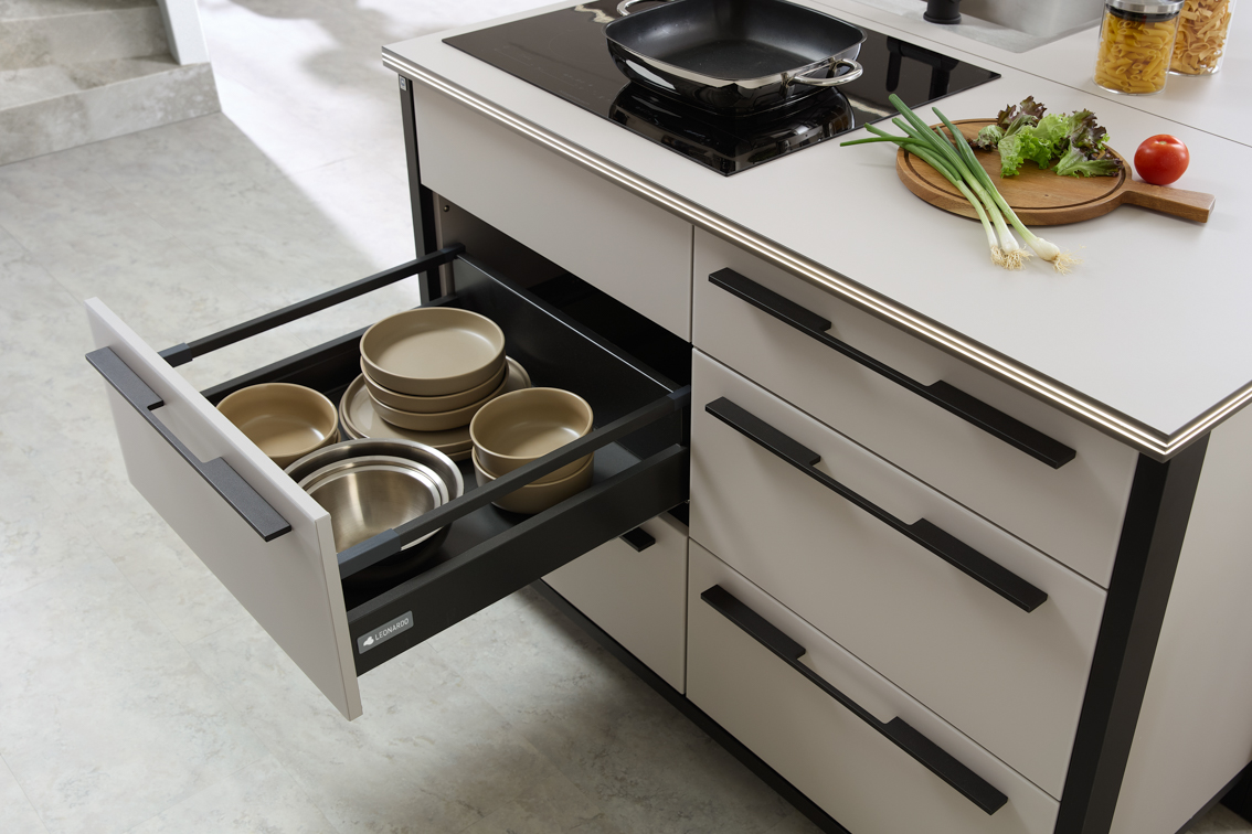Die LEONARDO Küche 24 kombiniert modernes Design mit maximaler Flexibilität und intelligenter Funktionalität. Dank des modularen Systems lassen sich Küchenelemente individuell an jede Raumgröße und Nutzungssituation anpassen – von offenen Wohnküchen bis hin zu kompakten Lösungen. Hochwertige Materialien, praktische Details wie Softclose-Auszüge, grifflose Fronten oder integrierte LED-Arbeitsplattenbeleuchtung sorgen nicht nur für Komfort, sondern auch für stilvolle Wohnatmosphäre. Entdecken Sie die neue Freiheit in der Küchenplanung mit LEONARDO.